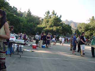 住宅街を抜けたグリフィス公園の中腹にある会場は広い芝生を有したとても心地良いところでした。近くの見るからに追っかけというボロボロのワゴンの人達は早くもパーキングロッドでの店出しの準備をしています。